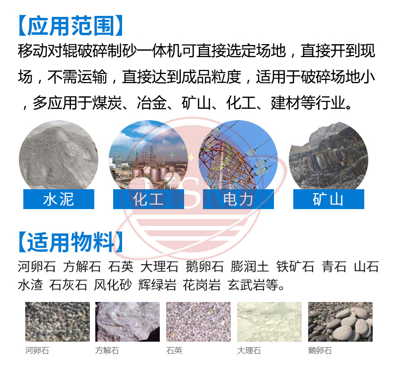 • 適用物料:河卵石、方解石、石英石、大理石、鵝卵石、膨潤(rùn)土、鐵礦石、青石、山石、水渣、石灰石、風(fēng)化砂、輝綠巖、花崗巖、玄武巖